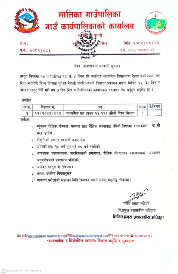 मालिका गाउँपालिकाले सूचना थप प्रभावकारी बनाउने उद्देश्यले अडियो नोटिस सेवा सुचारु गरिएको छ। सूचना प्राप्त गर्न १६१८०७९६२००७५ मा डायल गर्नुहोला ।
