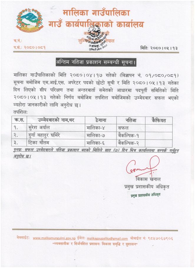 अन्तिम नतिजा प्रकाशन सम्बन्धी सूचना।