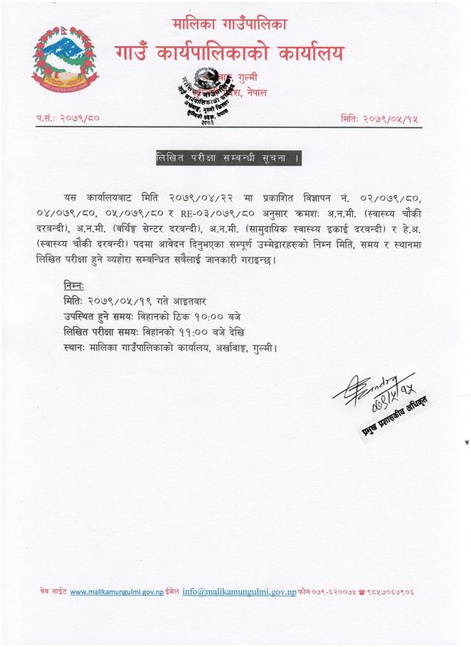 मालिका गाउँपालिकाले सूचना थप प्रभावकारी बनाउने उद्देश्यले अडियो नोटिस सेवा सुचारु गरिएको छ। सूचना प्राप्त गर्न १६१८०७९६२००७५ मा डायल गर्नुहोला ।