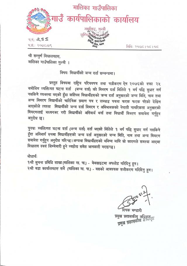 विद्यार्थीको जन्मदर्ता गर्ने सम्बन्धि सूचना।
