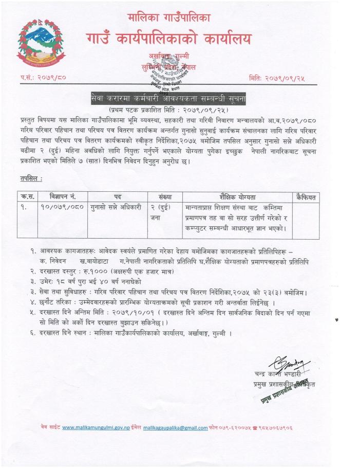 सेवा करारमा कर्मचारी आवश्यकता सम्बन्धी सूचना।
